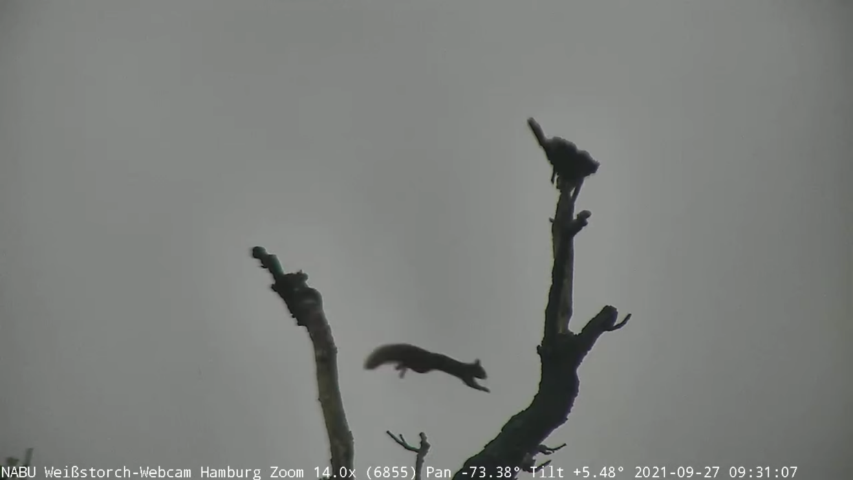 Hörnchensprung Eichhörnchen Red squirrel Sciurus vulgaris Curslack Hamburg DE 27.09.2021