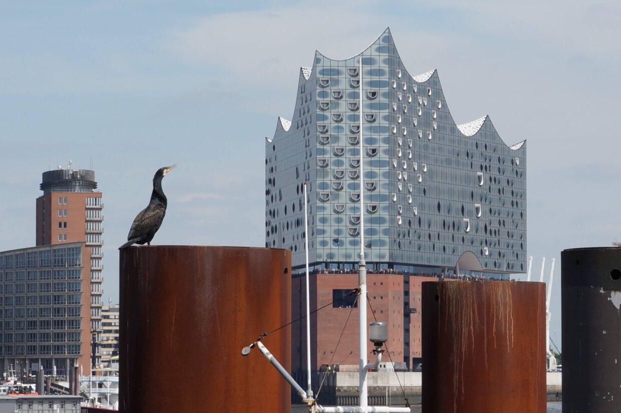 Elbphilharmonie mit Kormoran Konzerthaus Hamburg DE 27.06.2017 © Hitchcock/RL