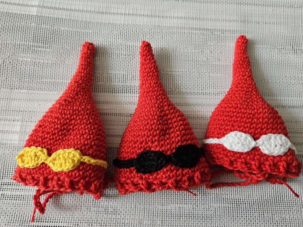 Zipfelmützen-Eierwärmer Red Baron style Strickkunst Häkelarbeit Graubünden CH 29.10.2023