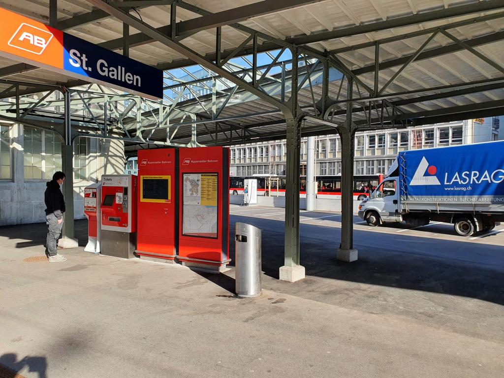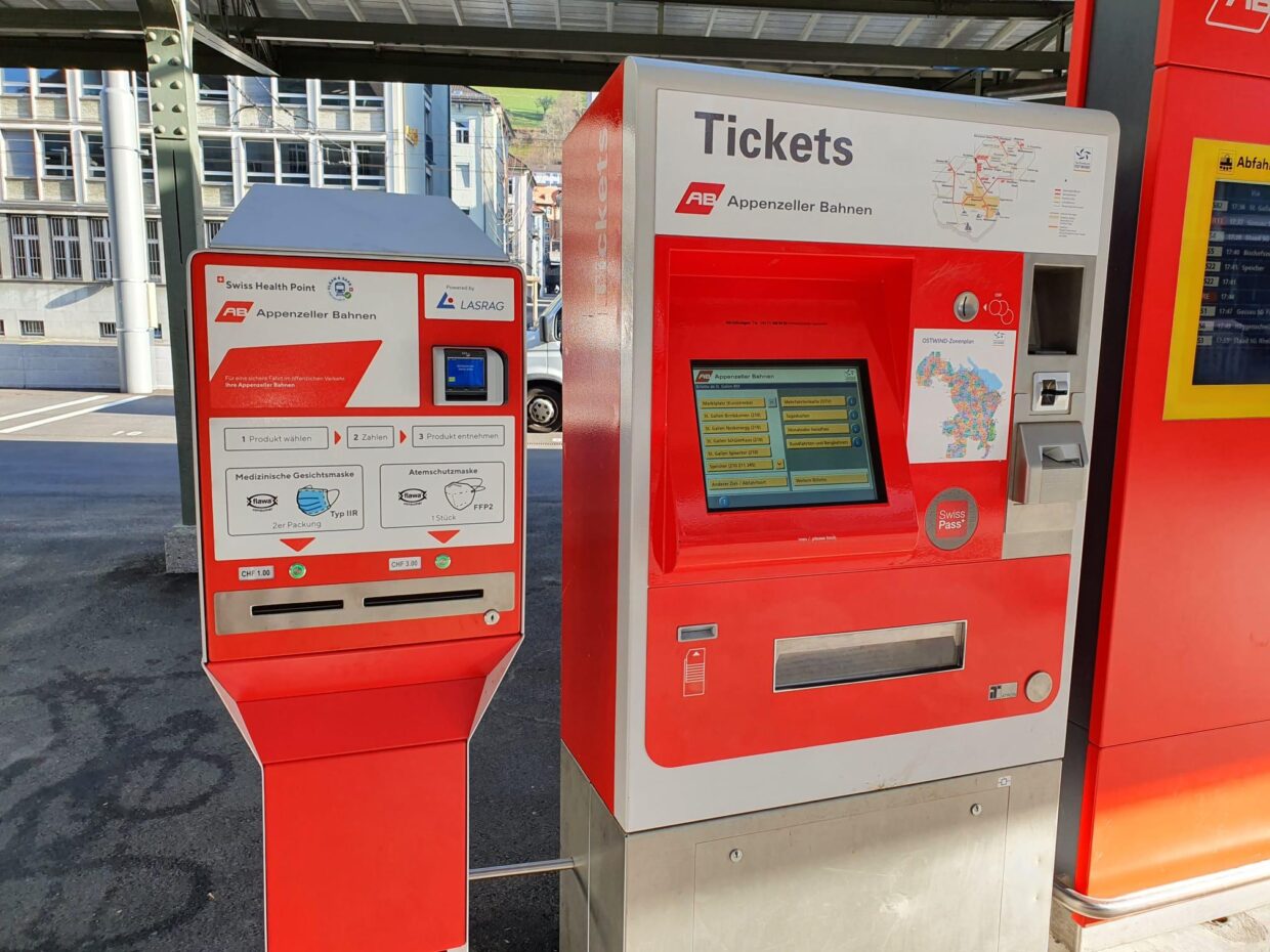 Corona Maskenautomat Medizinische Gesichtsmaske Appenzeller Bahnen St. Gallen CH 29.03.2021
