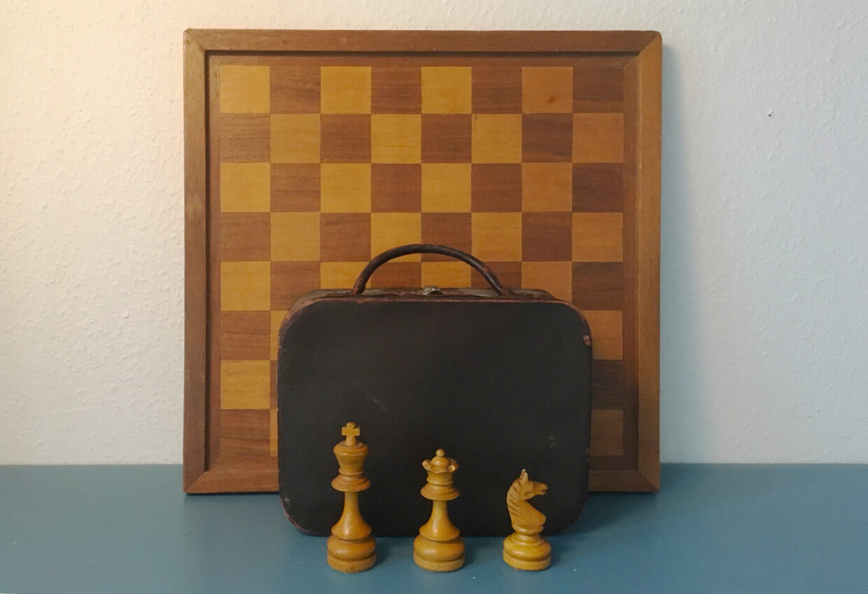 Schachkoffer meines Vaters und Schachbrett seines Sohnes.